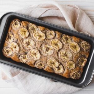 - Slice the remaining banana and arrange on top of the loaf for a decorative finish.
