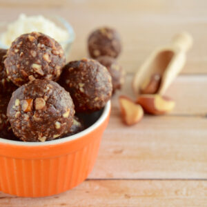 Keep your chocolate nut energy bites in an airtight container in the fridge for up to 1 week. They can also be frozen for up to 3 months—perfect for meal prepping snacks in advance.