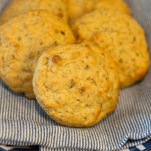 These golden, savory herb biscuits are fluffy, full of flavor, and completely gluten-free. With hints of garlic, Italian seasoning, and a touch of cheesy flavor from nutritional yeast, they’re the perfect healthy bread alternative for any meal. At just 130 calories, 4g protein, 11g fat, and only 3g net carbs per biscuit, you can enjoy them guilt-free!