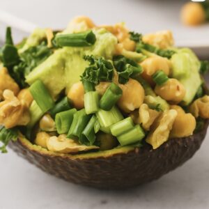 Creamy avocado halves overflowing with a flavorful chickpea and walnut salad—fresh, crunchy, and satisfying. A quick meal or appetizer ready in just 10 minutes.