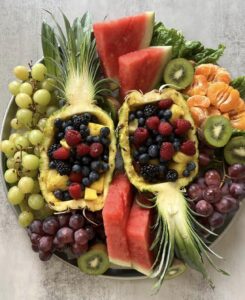 A showstopping centerpiece filled with pineapple, berries, grapes, kiwi, and watermelon. This one’s a hit with kids and adults alike—and easy to prep ahead.