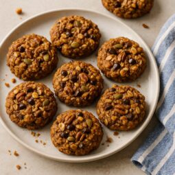 Cozy, chewy, and full of crunch—these Pumpkin Spice Nutty Breakfast Cookies are everything you love about fall in one nourishing bite. Naturally sweetened, oil-free, and perfect for breakfast or a grab-and-go snack.