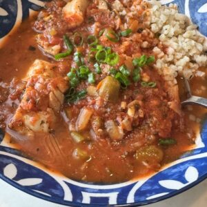 Health starts in the kitchen.If you grew up in South Louisiana like I did, you probably knew this dish simply as coubion. Some spell it courtbouillon — the original French term meaning “short broth.” Either way, it’s a deeply comforting Creole tomato-based fish stew that tastes like home.Traditionally served over rice, this version keeps all the bold Cajun flavor but lightens it up. No roux. No oil. No flour. Just rich tomato broth, fresh herbs, and tender white fish gently poached until flaky and perfect.You can make it in 30 minutes for a weeknight dinner — or let it simmer longer for Sunday-level depth.Both versions work beautifully for a low-carb lifestyle.